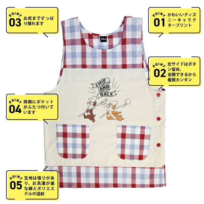 5. 【公式限定10%OFF】 ディズニーキャラクター保育士エプロン
