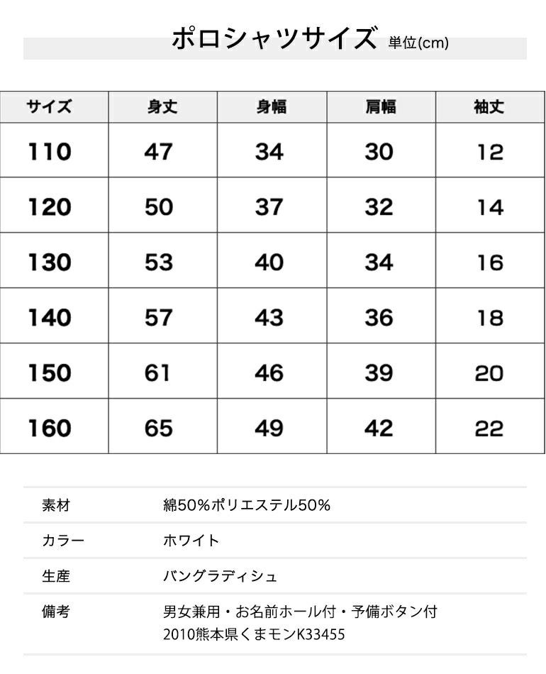 【公式限定10%OFF】 くまモン ポロシャツ キッズ 半袖 白 しっかり生地