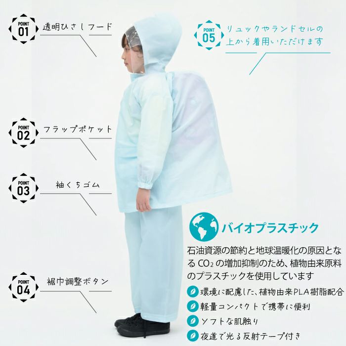 バイオプラスチック使用のEVAリュックランドレインスーツ(防水)[ランドセル対応]
