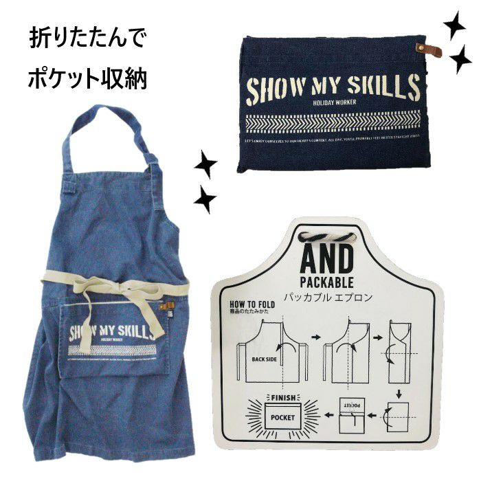 アウトドア ホルターネック式 シンプル ワークデザイン ヴィンテージ風 【公式限定10%OFF】 アンドパッカブル キッズエプロン(三角巾付き)