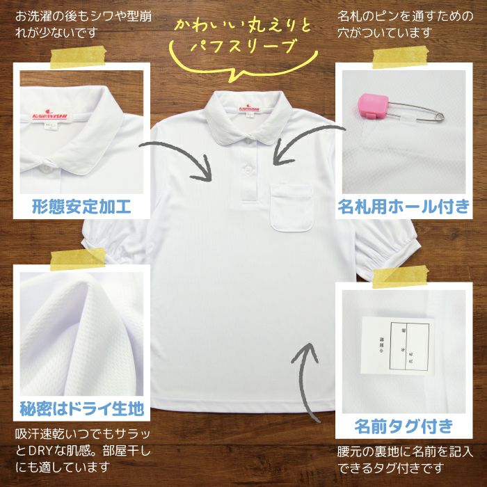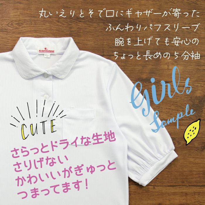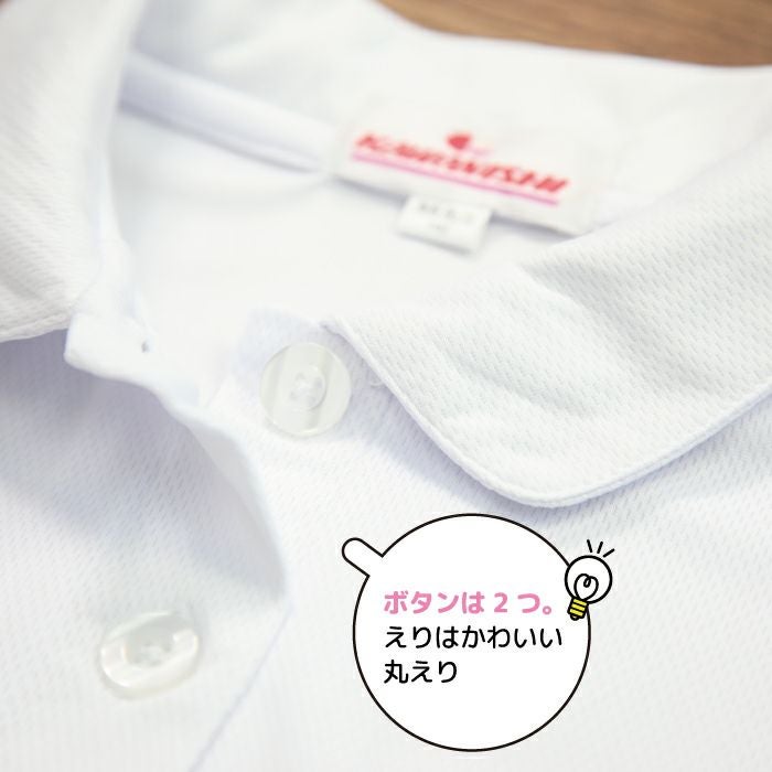 ポロシャツ 半袖 5分袖 キッズ 白 女の子 丸襟 ポリエステル ドライ 制服 通学服 小学校 高学年 ゆったり かわいい 美袖 夏 速乾 おしゃれ 名札テープ付