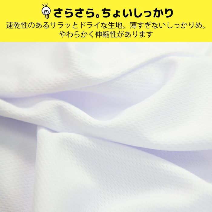 ポリエステル100%のドライ生地で着心地サラッと。