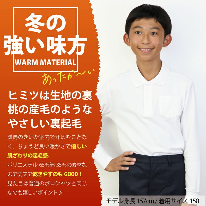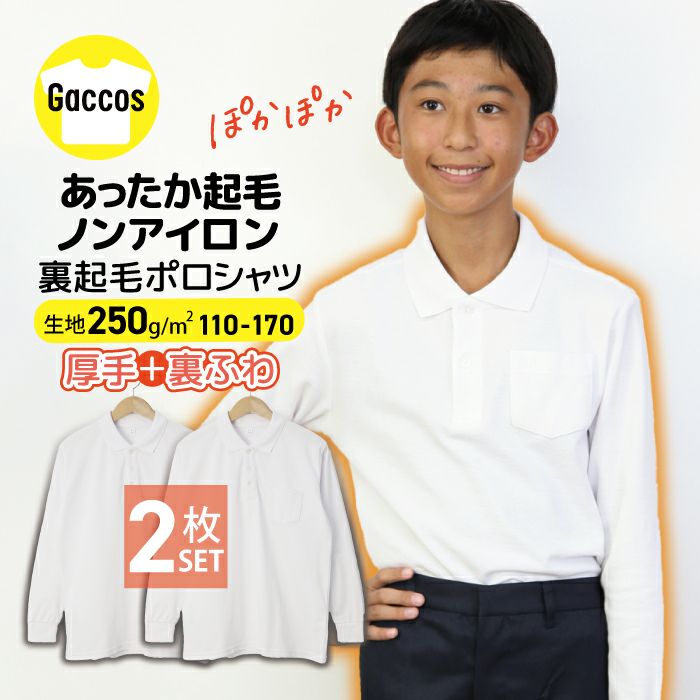 【公式限定10%OFF】 【裏起毛2枚入】 ポロシャツ 白 キッズ 長袖 あったか 起毛