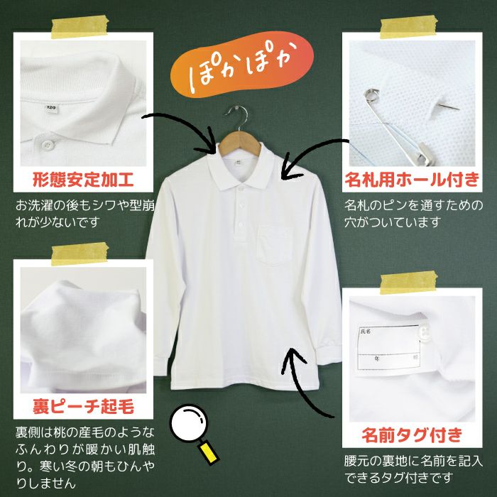 【商品名】裏ピーチ起毛長袖スクールポロシャツ