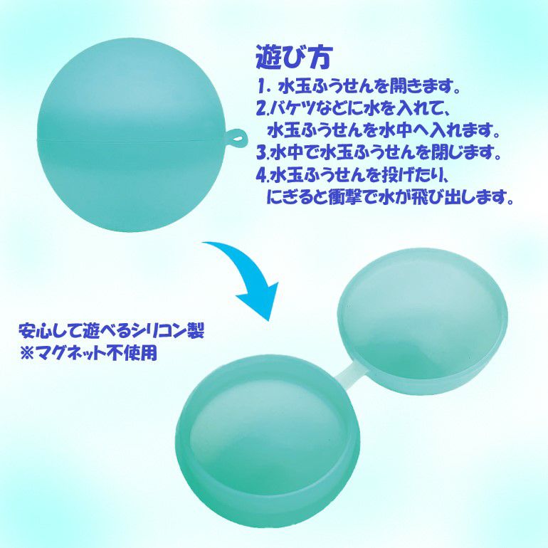 繰り返し使えるシリコン素材の水遊びグッズです。