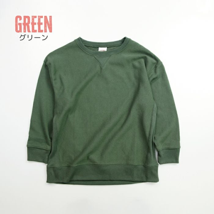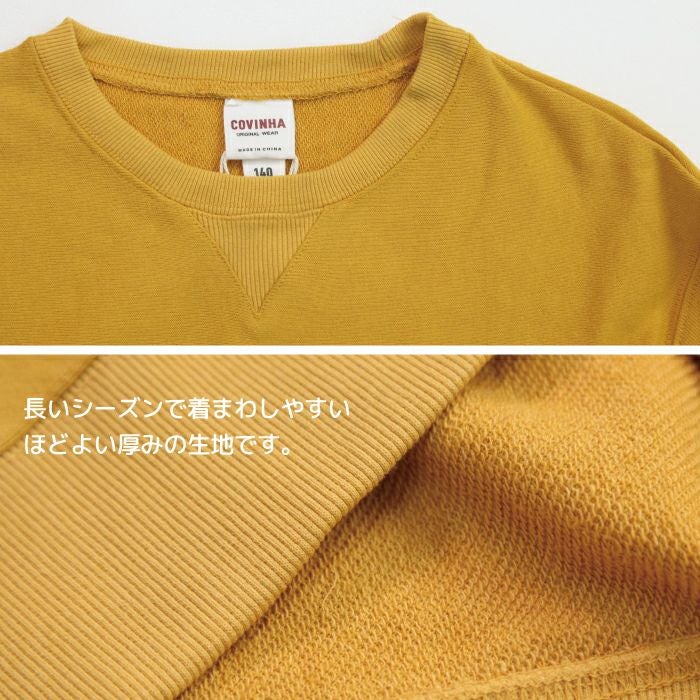 トレーナー キッズ 無地 男の子 女の子 スウェット 切替 リブ コットン 綿 ヘビーウエイト 中厚 子供服 保育園 通学 110 120 130 140 150 160 イエロー 黄色 ブラック 黒 グリーン 緑 カーキ グレー 裏毛 シンプル 長袖