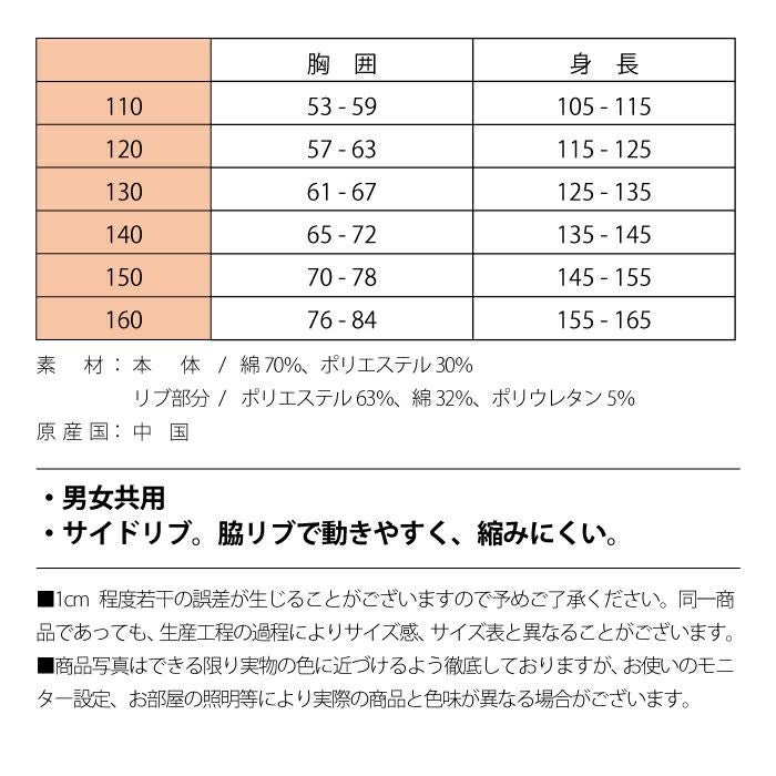 脇リブ加工で動きやすくおしゃれ☆シンプルなので男女共用にて着用出来ます!