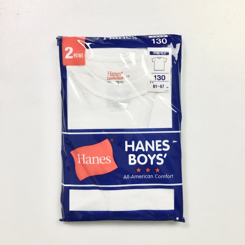 HANES BOYS 半袖 丸首 Tシャツ 2枚組 無地 ホワイト 白シャツ 綿100% 半袖肌着 130 140