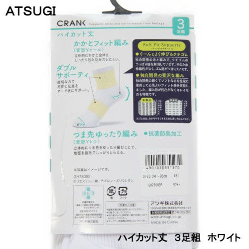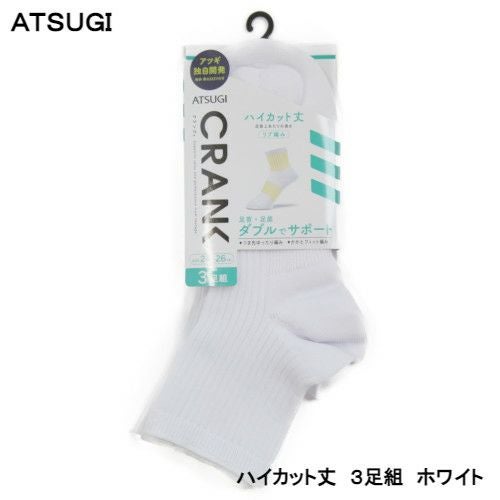 【50%OFF】 ATUGI CRANK 同色3足組 綿混 ハイカット丈ソックス