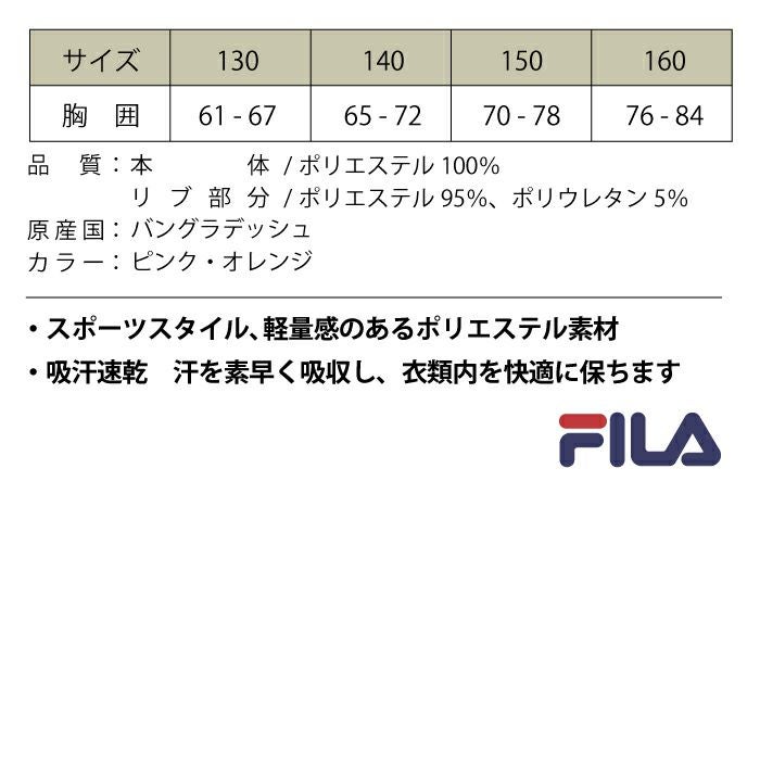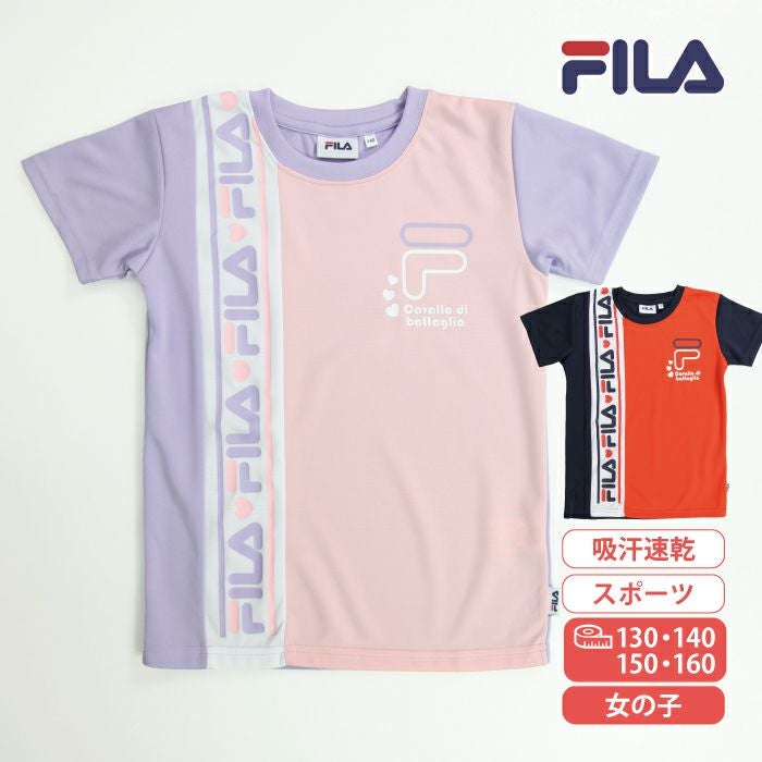 【FILA】フィラ 半袖 Tシャツ 女の子 小学生 キッズ スクール FILA 子供 学校T ブランドTシャツ 子ども スポーツウェア ポリエステル100% ピンク オレンジ 130 140 150 160 J2209 キッズ アクティブ スポーツ