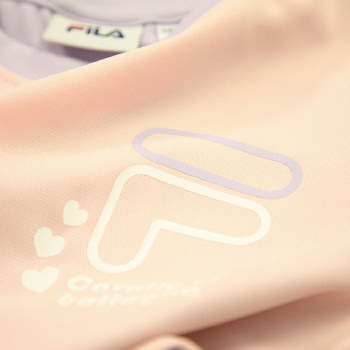 FILAのロゴとかわいいハートプリント、袖の配色もおしゃれでキュート