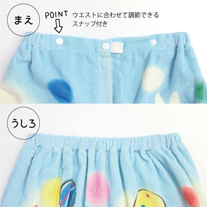 ゴムとスナップがついているので、スカートやポンチョとして使用できます。