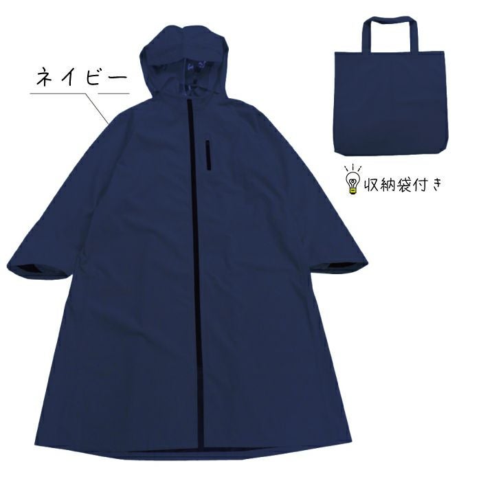 ・レインコートをサッと収納できる、大きな収納袋付き。A4サイズも余裕で入る大きさで、サブバッグとしても持ち歩きできます。