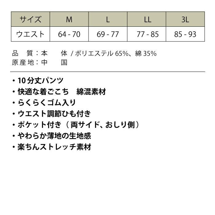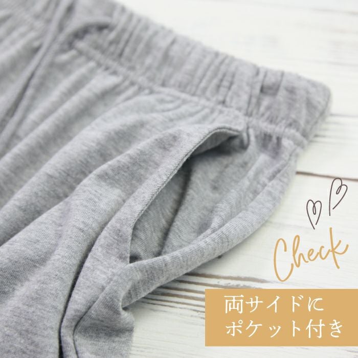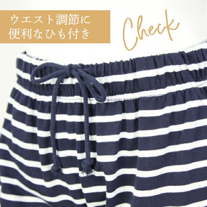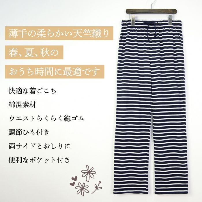 綿混素材でやさしく涼しいルームウエアパンツです。