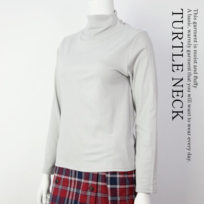 タートルネック レディース ハイネック ニット カットソー ストレッチ トップス しっとりなめらかな着心地 ぽかぽか 長袖 シンプル ベーシック ミルキータッチ M/L/LL ブラック ホワイト ライトグレー オレンジ