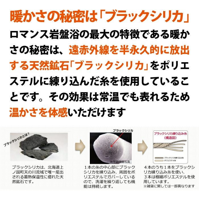 繊維に「ブラックシリカ」を練りこむことで、保温性を高め、体の中からじんわりと温めます。