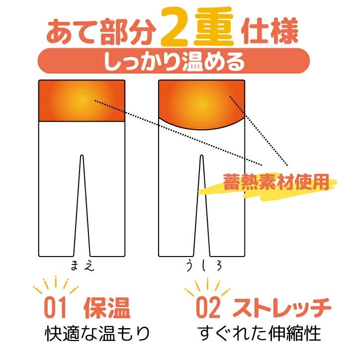 蓄熱素材の当て布を前後に使用。二重仕様でしっかり温める