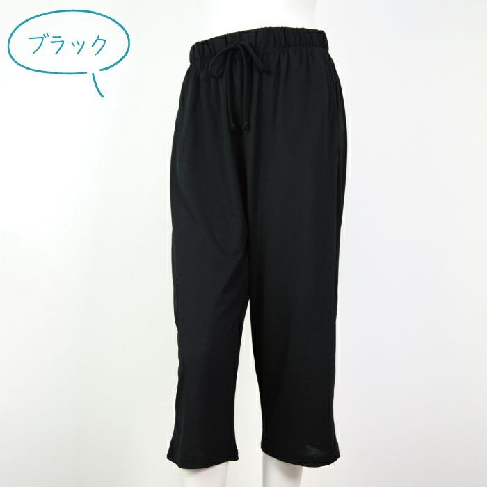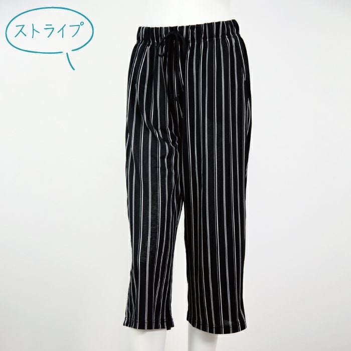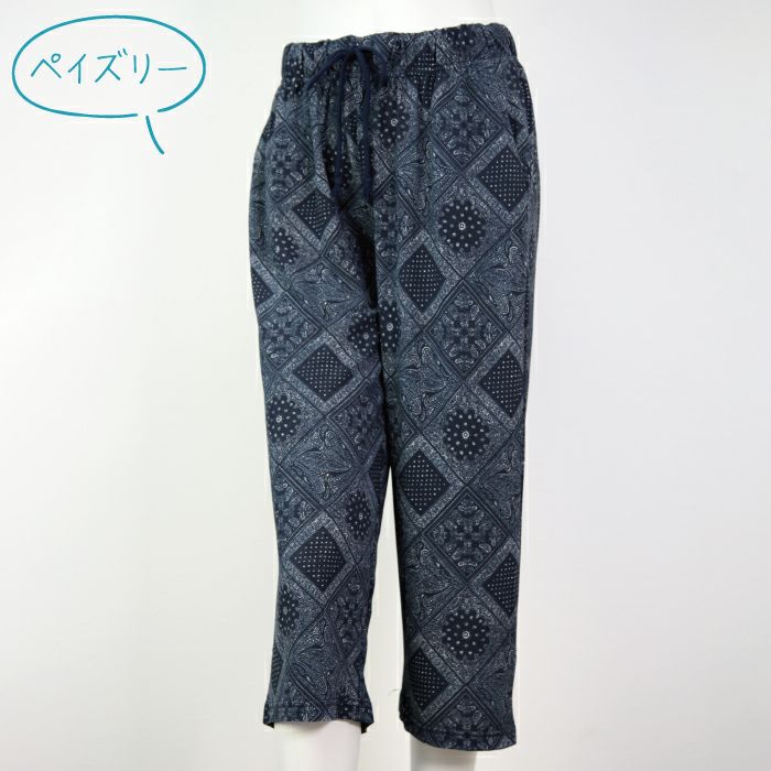 7分丈パンツ レディース ルームウエア さらさら 涼しい 快適 無地 ネイビー ブラック ペイズリー ストライプ ポケット付き 速乾 伸縮