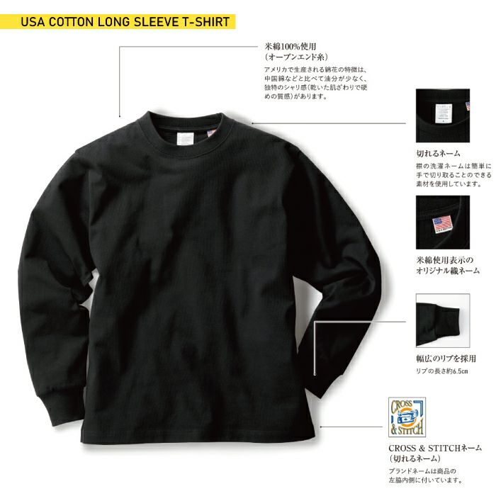 米綿100%のオープンエンド糸を使用した8.1ozロングスリーブTシャツ。