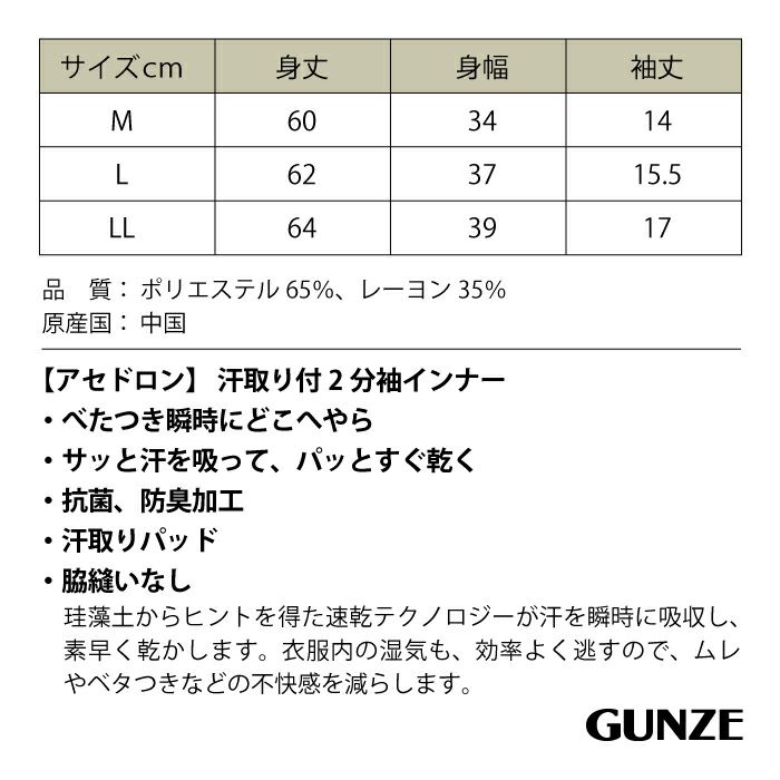 グンゼ アセドロン 汗取り付2分袖インナー MC0051 M L LL 婦人 肌着 レディース インナー