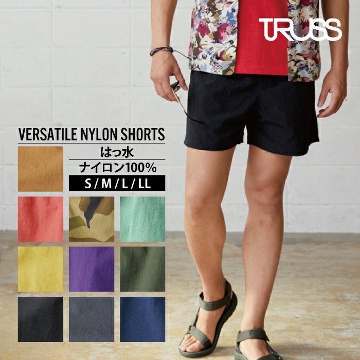 ショートパンツ 撥水 ハーフパンツ メンズ レディース ナイロン ショーツ TRUSS トラス ズボン 短パン 男女兼用 ユニセックス ウエストゴム 水遊び 無地 カモフラ 迷彩 メール便 ポケットあり アウトドア 夏 軽量 コンパクト フェス 祭り 海 川