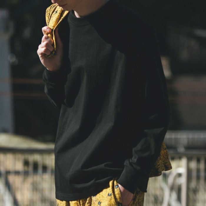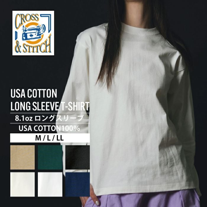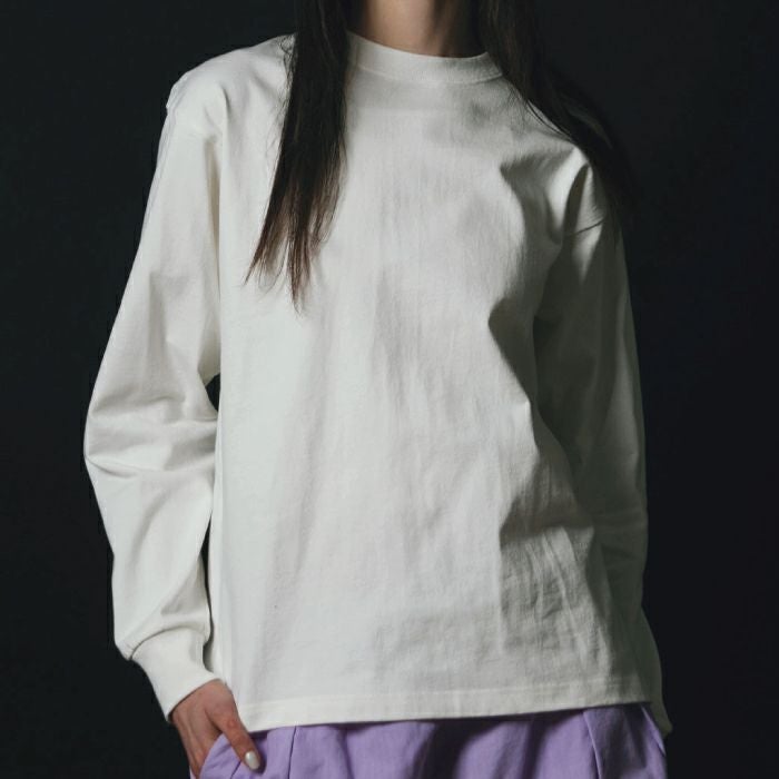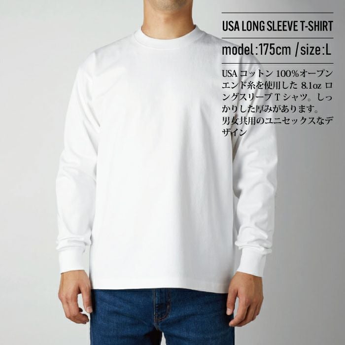 米綿100%のオープンエンド糸を使用した8.1ozロングスリーブTシャツ。