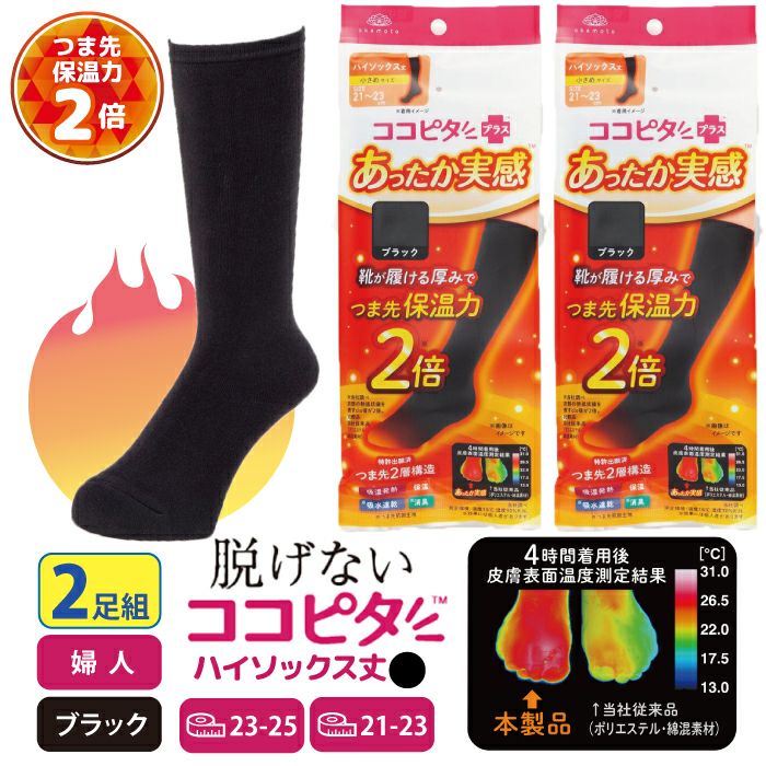 【公式限定10%OFF】 ココピタ あったか実感 2足組 ハイソックス丈
