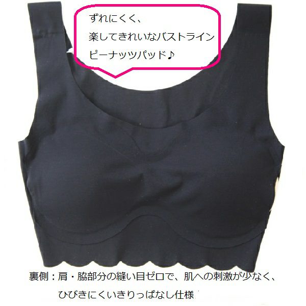 左右一体型パッドできちんと寄せて、楽してきれいなバストライン!パッドは取り外し可能です。