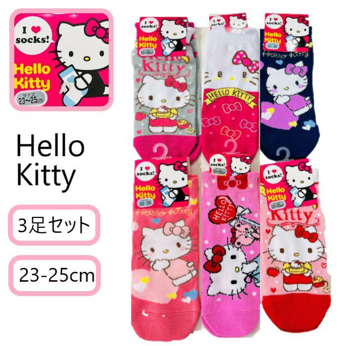 【公式限定10%OFF】 【3足セット】ハローキティソックス 23-25cm