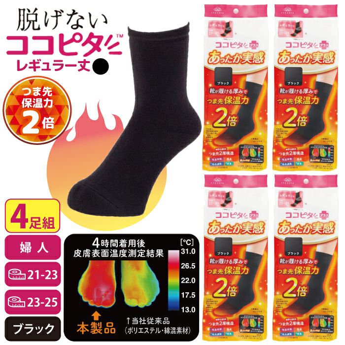 他の画像を見る メール便発送可能 【公式限定10%OFF】 ココピタ あったか実感 4足組 レギュラー丈 クルー丈 定価 ¥ 3,960 のところ 当店特別価格 ¥ 3,564 税込 在庫切れ カートに入れる お気に入りに登録する