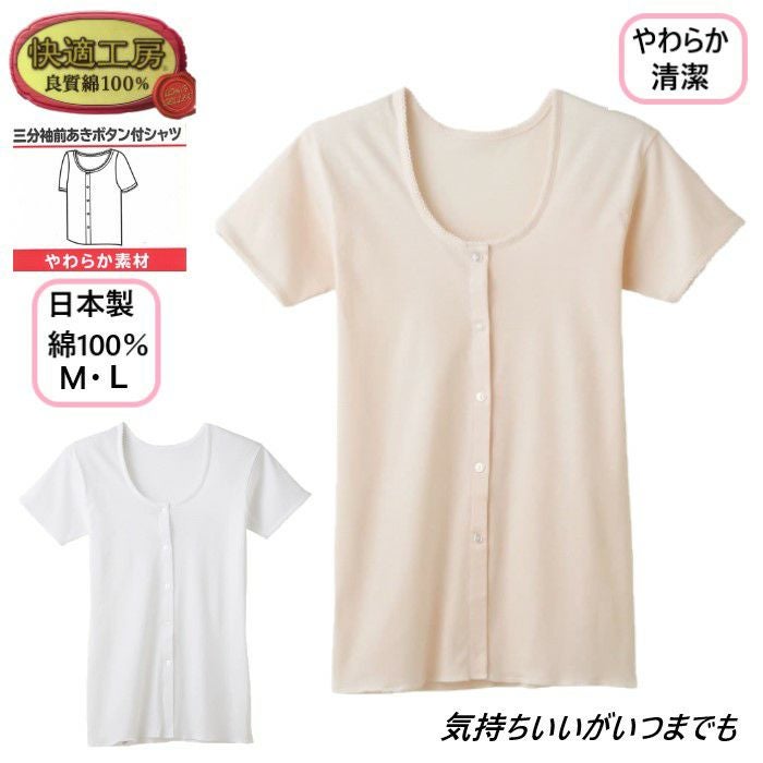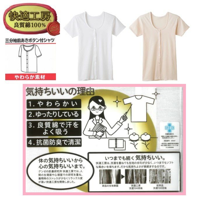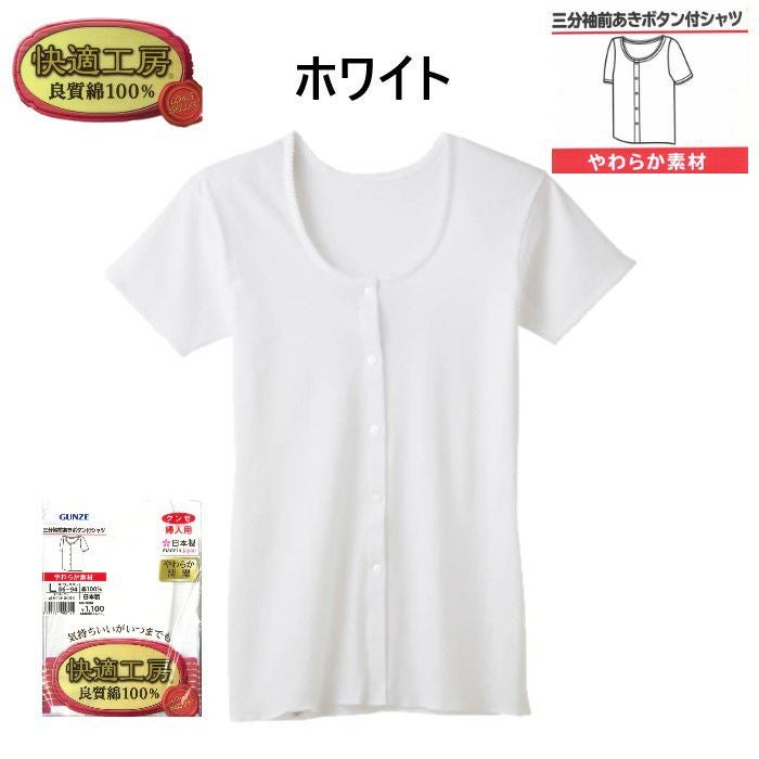 他の画像を見る レディース 綿100%日本製インナー 【公式限定10%OFF】 グンゼ快適工房 三分袖 前あき ボタン付きシャツ 定価 ¥ 1,100 のところ 当店特別価格 ¥ 990 税込 在庫切れ カートに入れる お気に入りに登録する