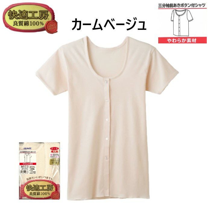 他の画像を見る レディース 綿100%日本製インナー 【公式限定10%OFF】 グンゼ快適工房 三分袖 前あき ボタン付きシャツ 定価 ¥ 1,375 のところ 当店特別価格 ¥ 1,238 税込 在庫切れ カートに入れる お気に入りに登録する
