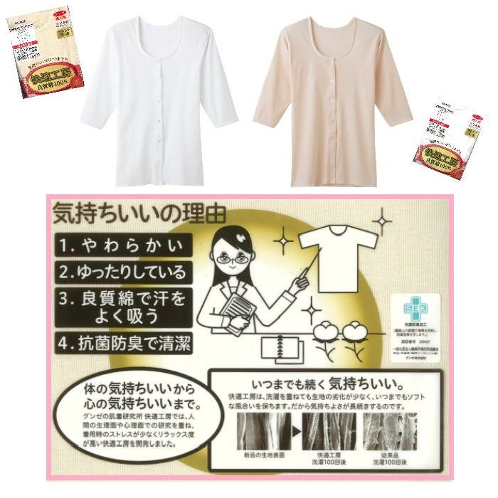 他の画像を見る レディース 綿100%日本製インナー 【公式限定10%OFF】 グンゼ快適工房 七分袖 前あき ボタン付きシャツ 定価 ¥ 1,320 のところ 当店特別価格 ¥ 1,188 税込 在庫切れ カートに入れる お気に入りに登録する