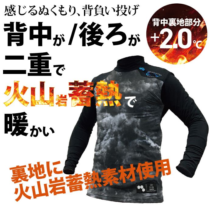 背中が二重で火山岩蓄熱で暖かい長袖ハイネック!感じるぬくもり、背負い投げ!
