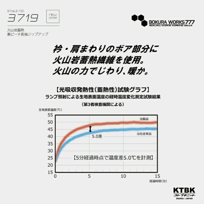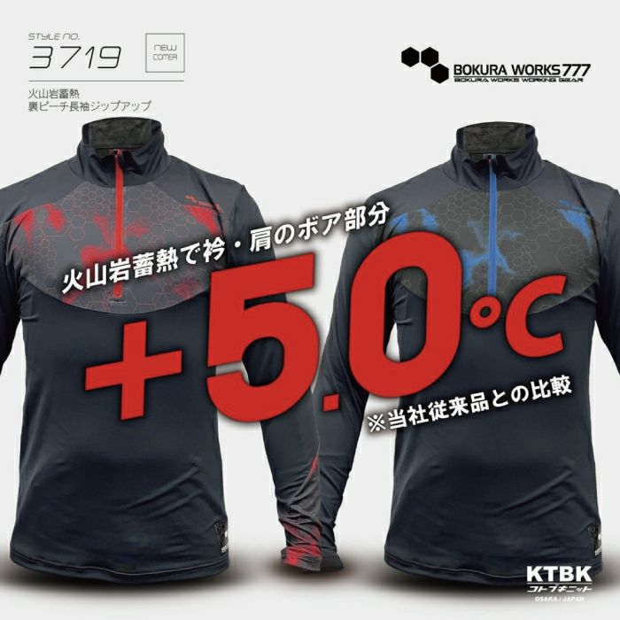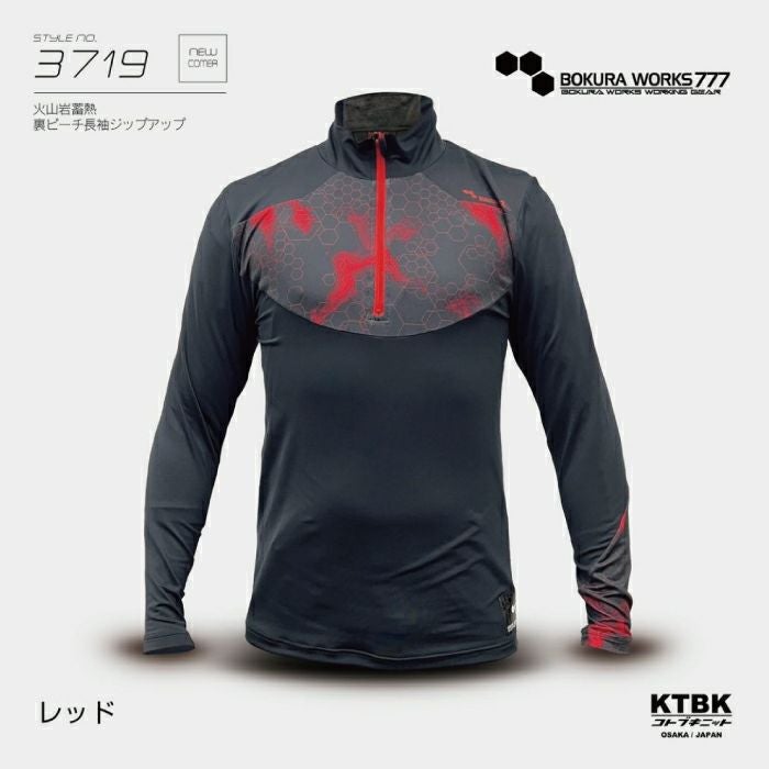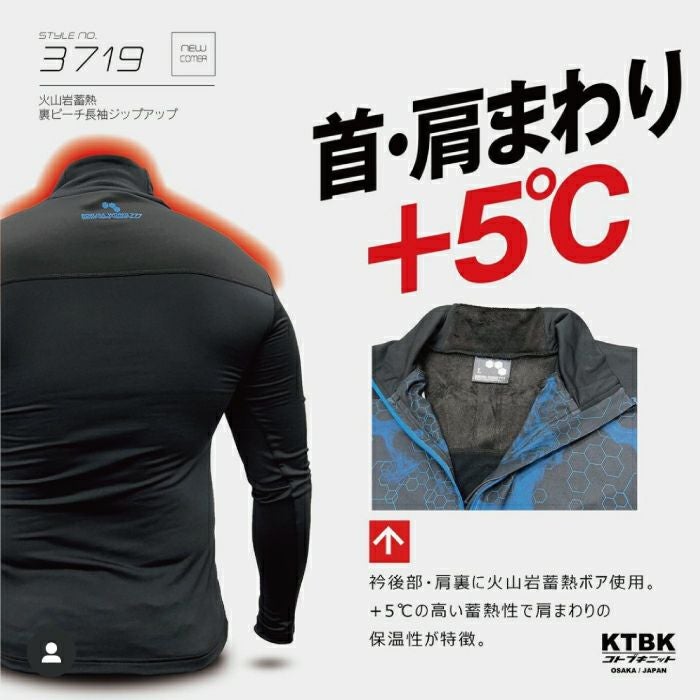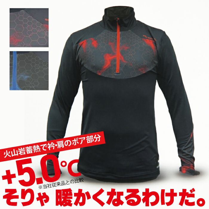 品名:火山岩 蓄熱 裏ピーチ長袖ジップアップ