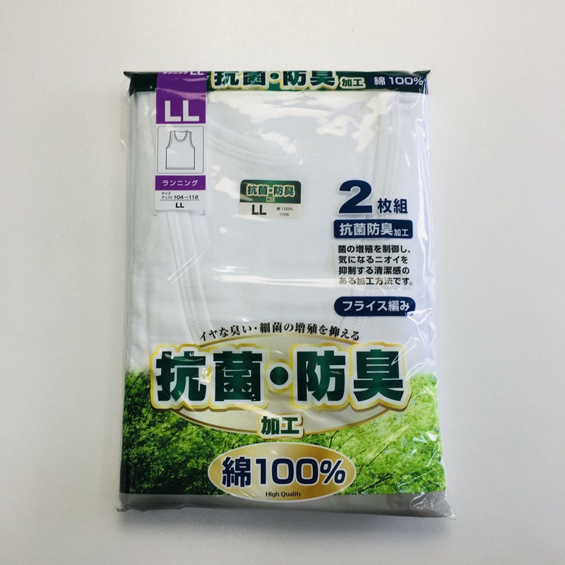 2枚組 抗菌 防臭 ランニング メンズ 下着 紳士肌着 インナーシャツ 無地 ホワイト 綿100% LL 年間 オールシーズン 半袖肌着 父の日