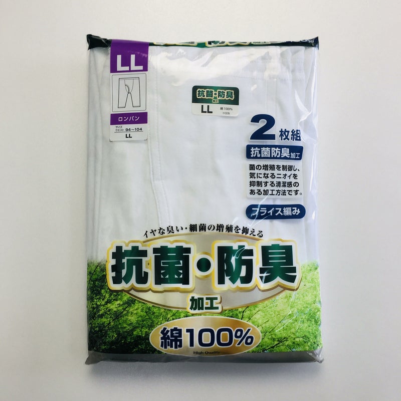 2枚組 抗菌 防臭 ロンパン メンズ 下着 紳士肌着 無地 ホワイト 綿100% LL 年間 オールシーズン 肌着 父の日