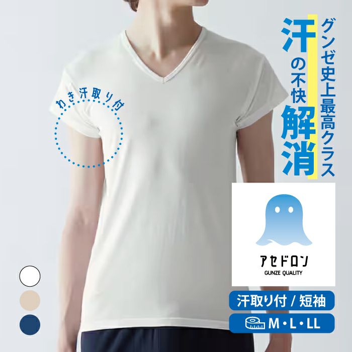 グンゼ アセドロン 汗とり付VネックTシャツ MAC612 M L LL 紳士 肌着 メンズ インナー