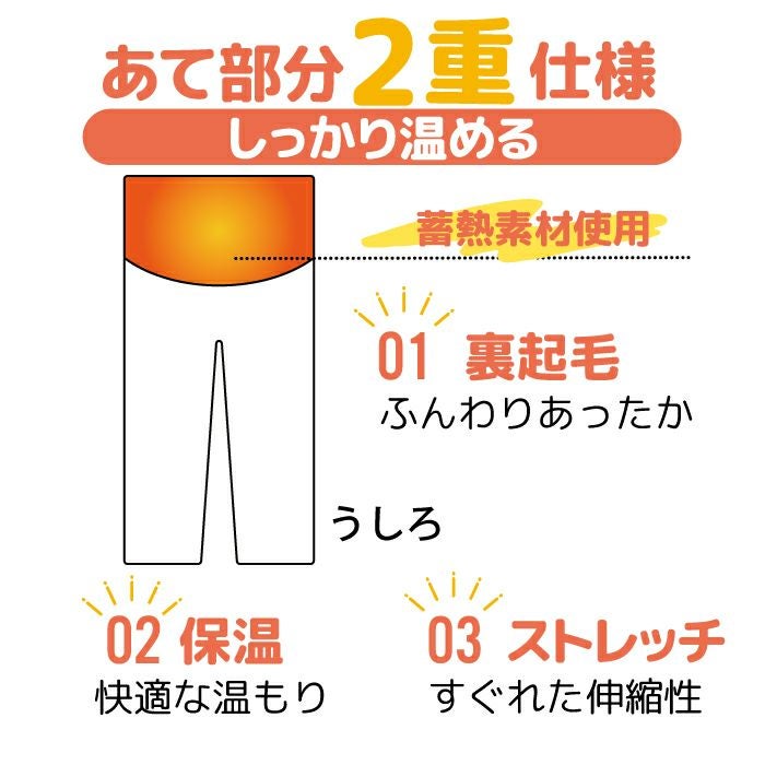 蓄熱素材の当て布を腰部分に使用。二重仕様でしっかり温める