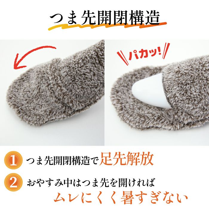 ・お休み中はつま先開閉構造でムレにくく熱すぎない
