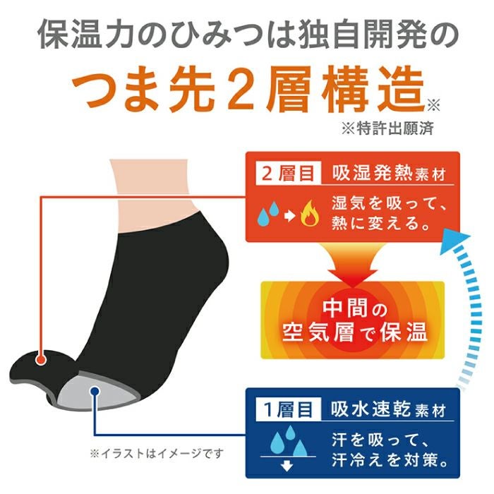 独自開発つま先2層構造で保温力2倍