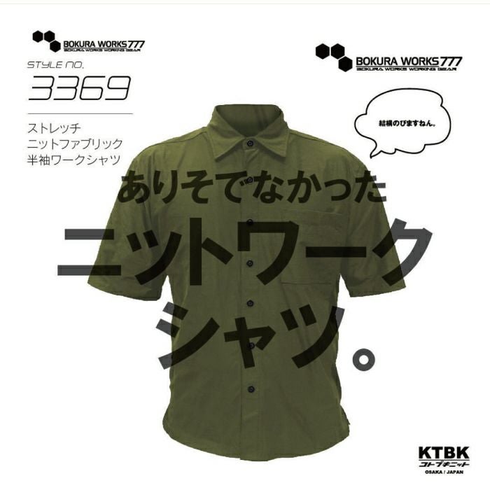 ストレッチニットファブリック素材を使用した半袖ワークシャツ