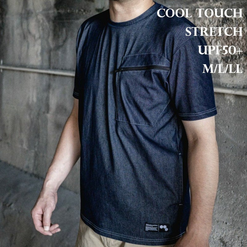 接触冷感 ストレッチ デニム 半袖Tシャツ