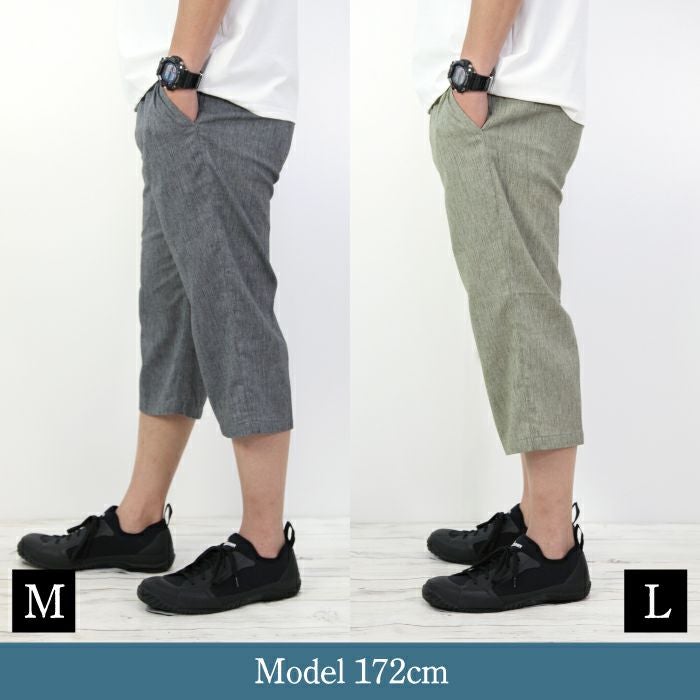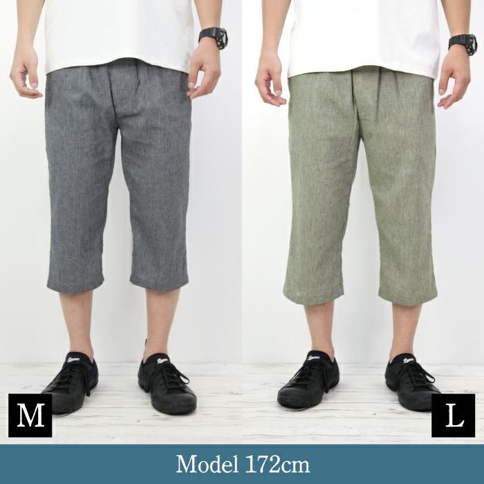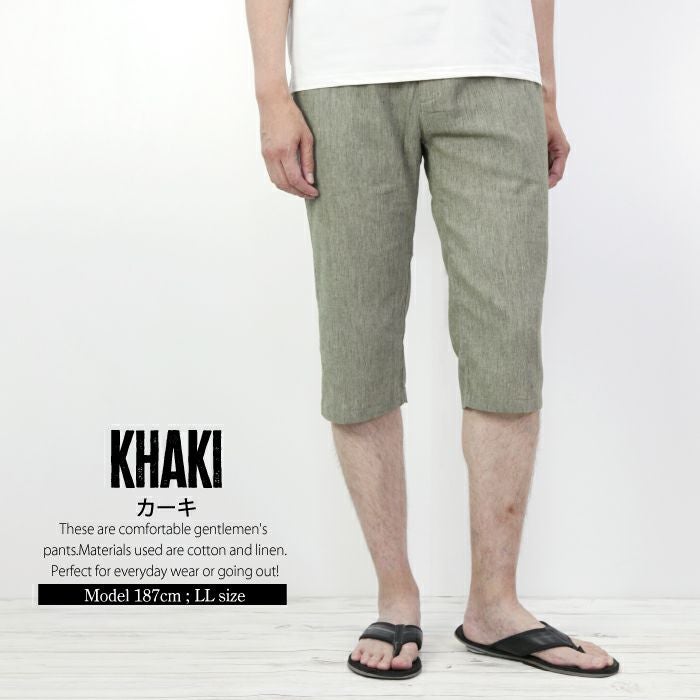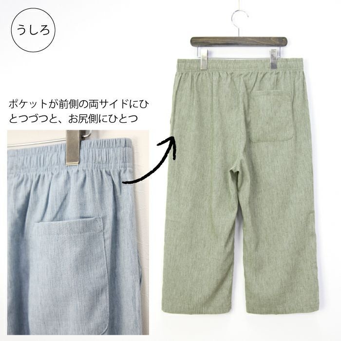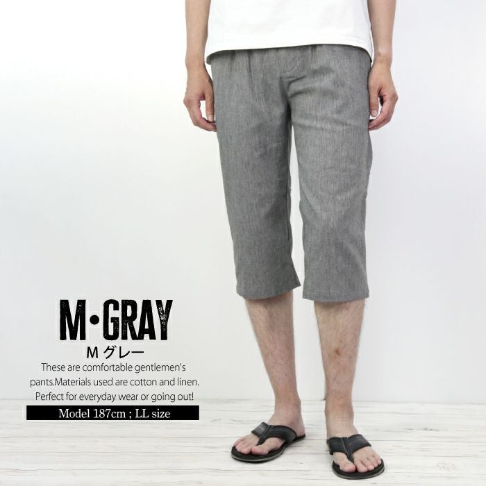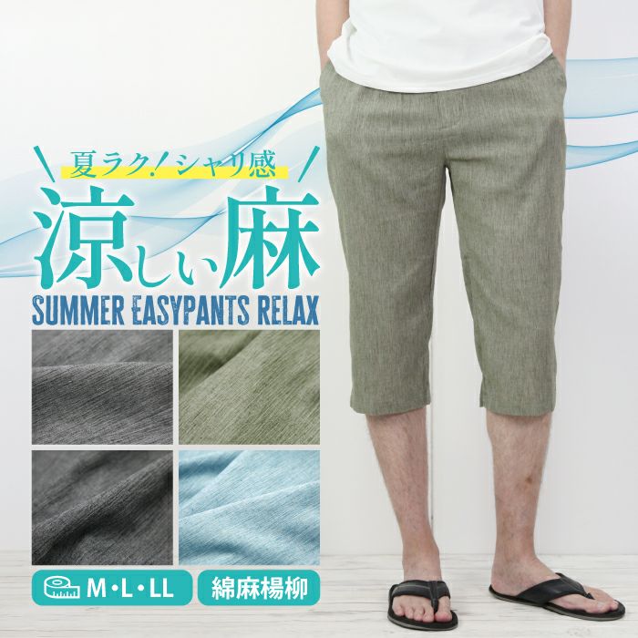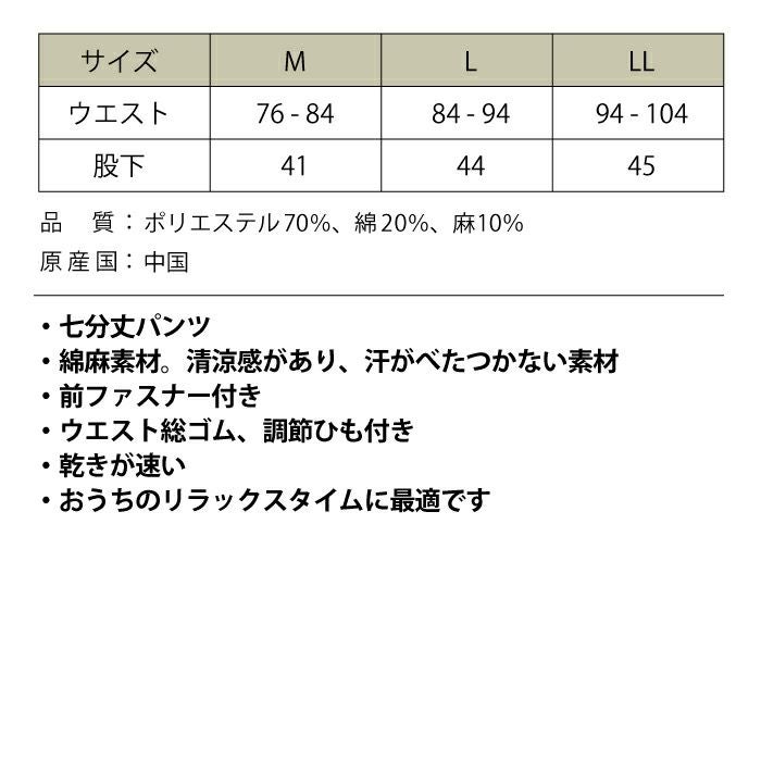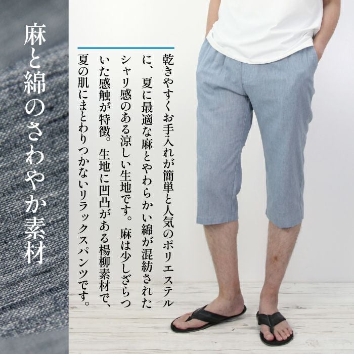 7分丈 抑揚 麻混 リラクシング イージーパンツ お部屋でくつろげる ルームウエア メンズ ウエストゴム サラリとした履き心地