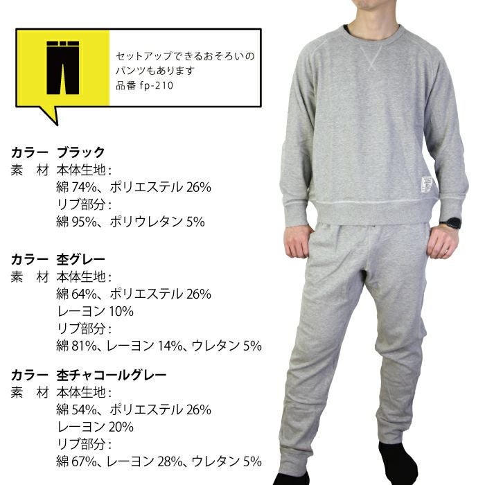 メンズ トレーナー リラックス 部屋着 テレワーク ホームウエア グレー ブラック スウェット タイトトレーナー