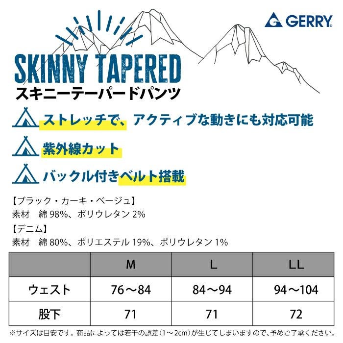 | 素材 | カーキ ベージュ ブラック素材:綿98% ポリウレタン2% デニム素材:綿80% ポリウレタン1% ポリエステル19% |