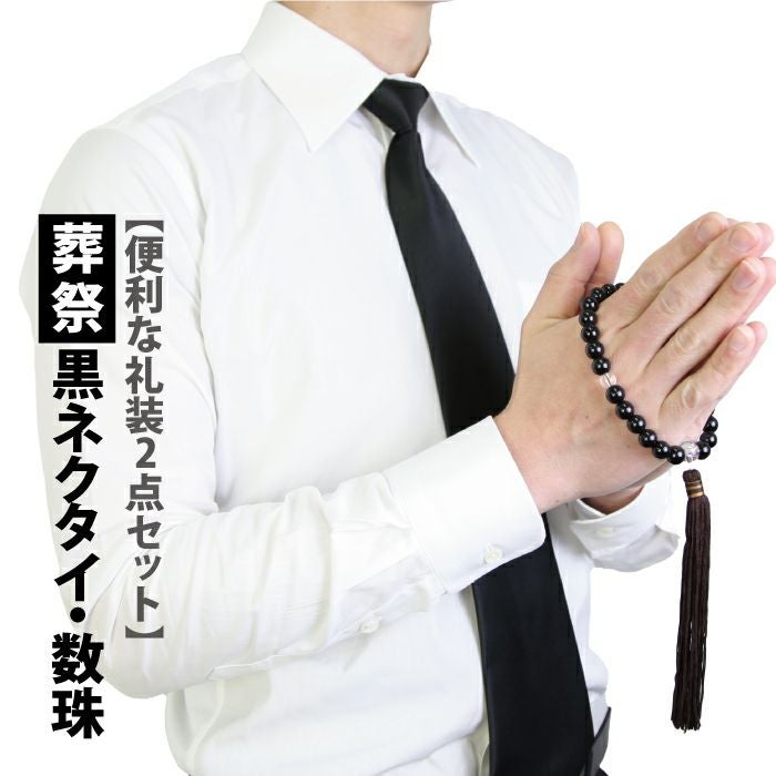 【公式限定10%OFF】 ネクタイ 黒 葬儀 数珠 2点セット