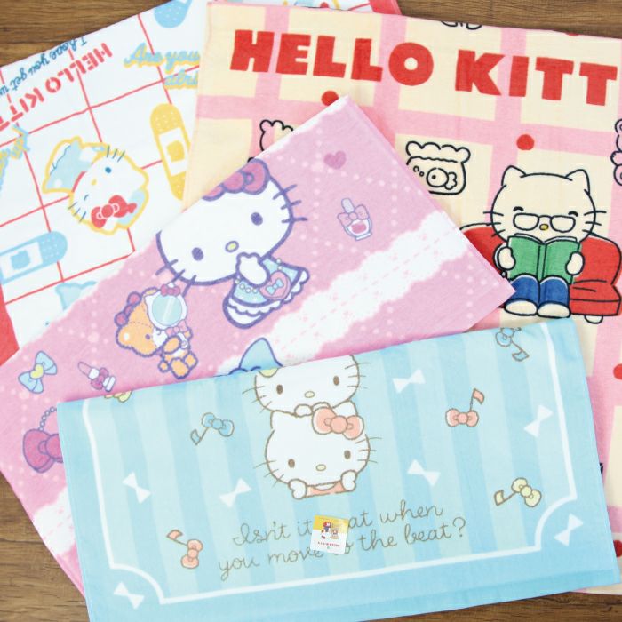 サンリオの大人気キャラクター、キティーちゃんのバスタオルです。どの柄もとってもキュート!