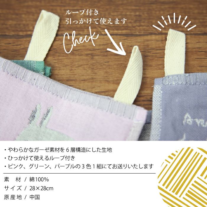 他の画像を見る 保育園 幼稚園で必要なループタオル3枚組です。ナチュラルなデザインでほっこりかわいい北欧風。6層構造の生地でしっかり吸水ガーゼ素材。サイズは正方形28×28cm 【公式限定10%OFF】3枚組ループタオル ほっこりかわいい北欧風デザイン 新着商品 定価 ¥ 1,320 のところ 当店特別価格 ¥ 1,188 税込 カートに入れる お気に入りに登録する