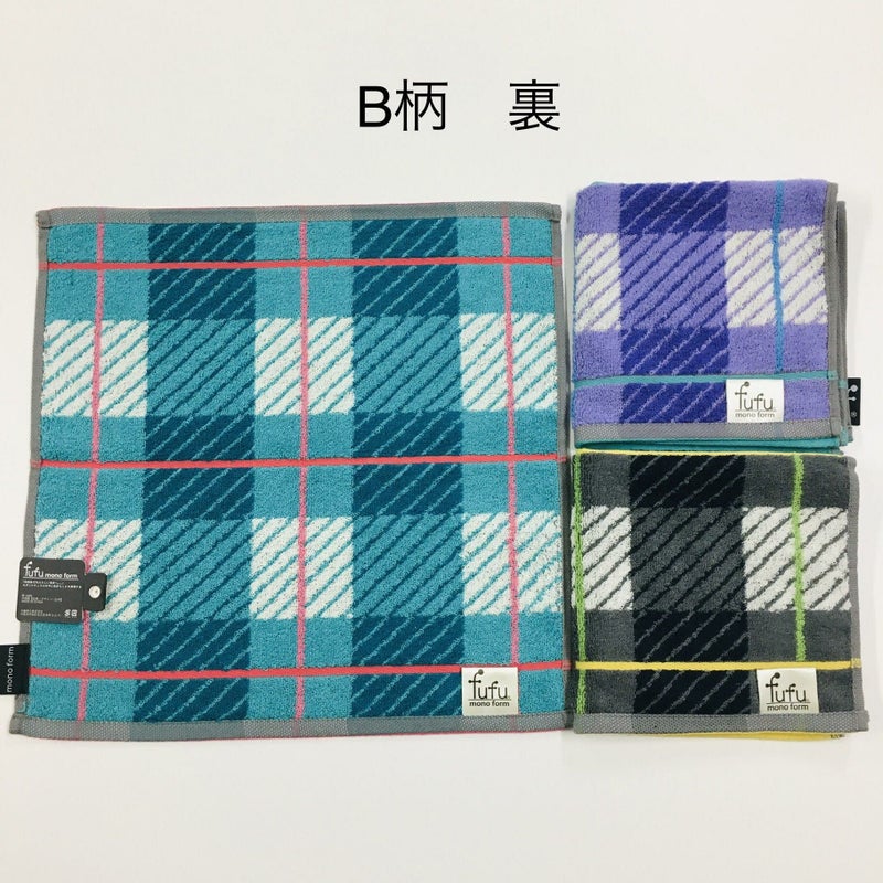 3枚セット ウォッシュタオル fufu タオル 綿100% 約34×34cm チェック柄 ドット柄